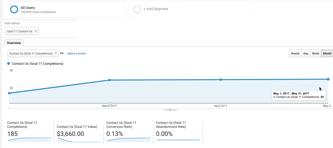 Now we will get into a conversation that is a little more comfortable: macro conversions that directly tie to sales and revenue. We will consider macro conversions as requests to contact sales or for a product or services demo. This is the very bottom of your website’s sales funnel.