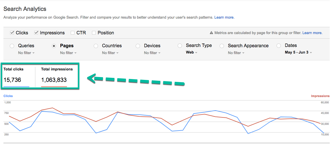 - Clicks: The number of times a page on your site was clicked after it showed up in search results.