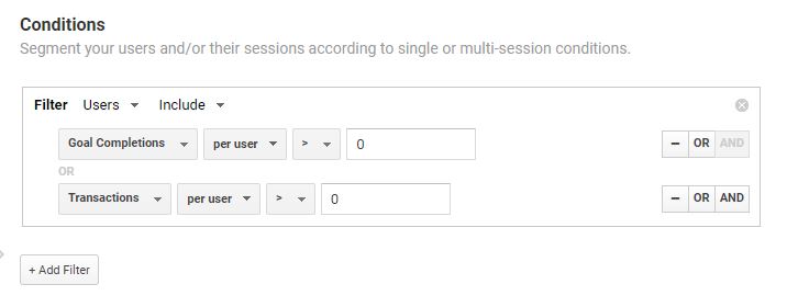 In Google Analytics, start by adding an advanced segment that solely includes data from those who Converted (Goal Completions > 0 and Transactions > 0).
