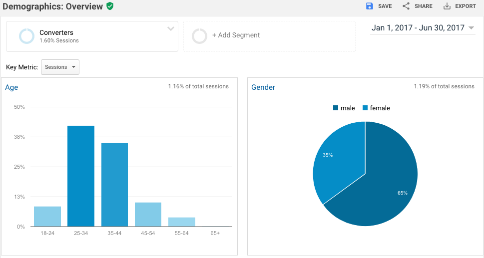 Use Audience reports such as Demographics and Geo to understand characteristics of previous converters.