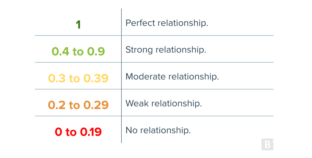 We used the Pearson Correlation Coefficient and dozens of data points to demonstrate the relationship. Here’s how the scoring works for positive correlations: