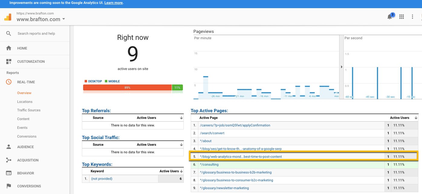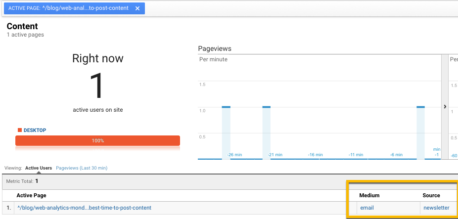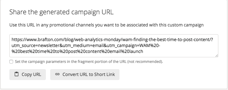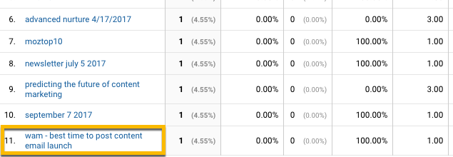 Now anytime someone clicks on this link, GA will put them into a folder called “WAM – best time to post content email launch.”