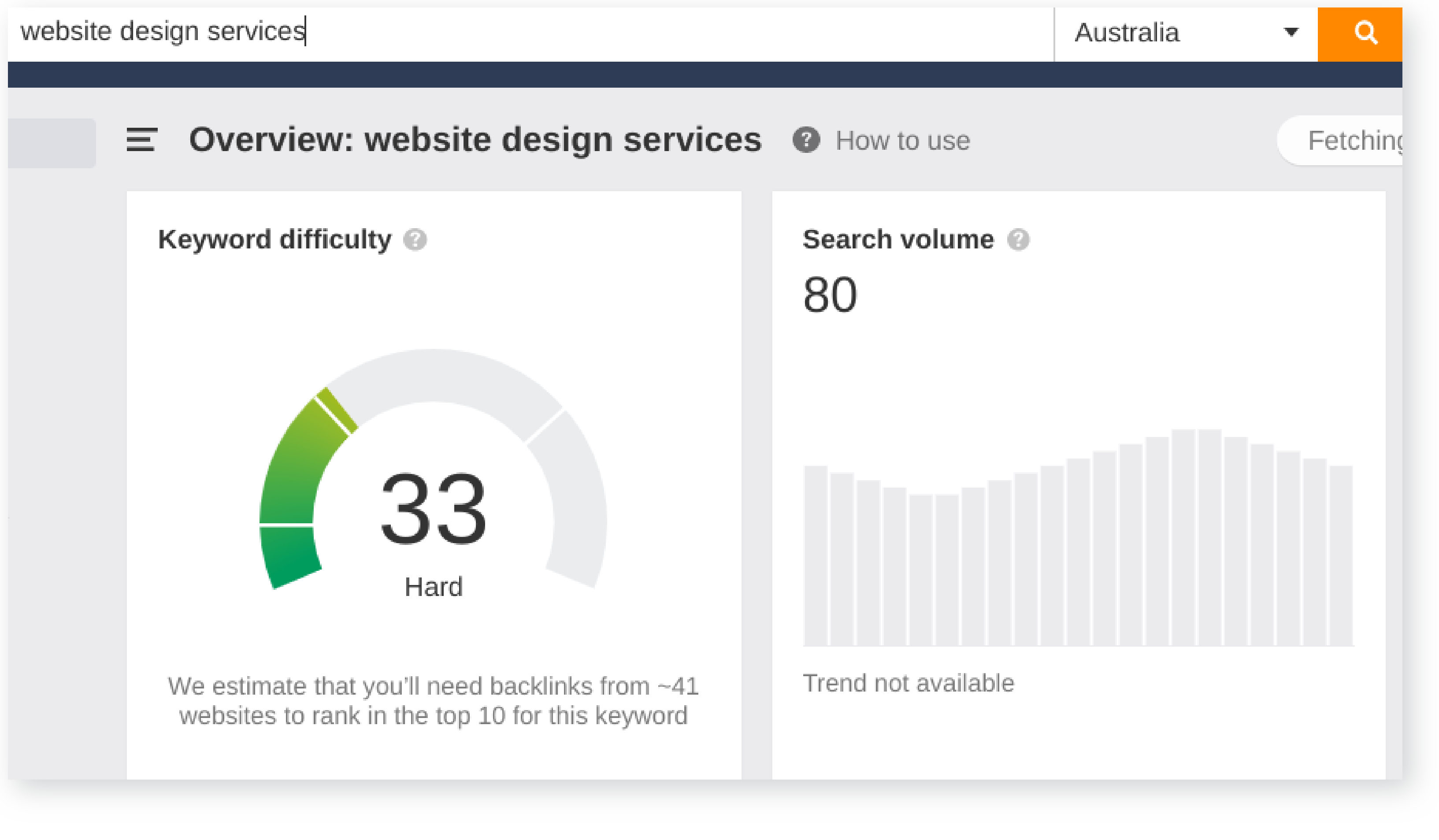 For example, the keyword “website design services” is a great keyword for our U.S. market, generating 1,400 searches per month. But our AU market shows a major discrepancy: