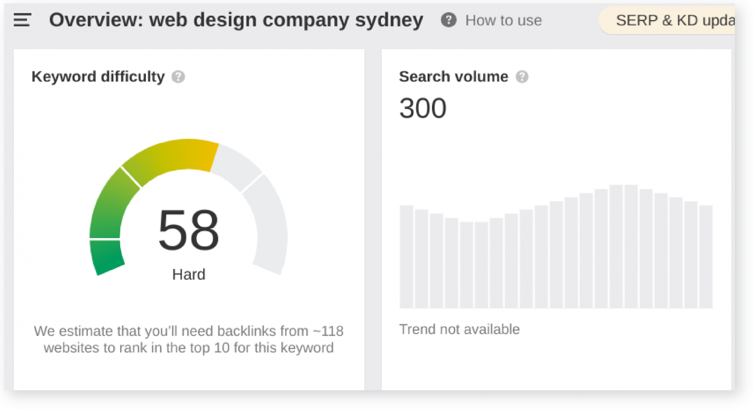 After doing a little keyword research, we found that “web design company sydney” has far more potential, albeit a bit more difficult to rank for.